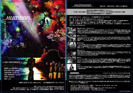 『中秋の名月を見る宴・HUMOON』 会場:江の島展望灯台サンセットテラス 開催時間:13:00〜19:00 料金:2,000円 (江の島サムエル・コッキング苑入苑料¥200+展望灯台入苑料¥300含) 65歳以上、16歳未満入場無料 [出演アーティスト] BOBIN&MABEE(Agt,Vo,Tabla,Egt) BUN−KOH-TAO(KALIMBA) CHOUCHIN(Sea Side JAZZ) The Sun Goes(LATIN JAZZ) NATA(Didgeridoo) GEN(Agt.,Vo.) ★荒天の場合は中止になることがあります ★前日までのお問合せ 江ノ島電鉄(株) 0466-24-2715 (月〜金 9:00〜17:00) ★当日のお問合せ 江の島展望灯台 0466-23-2444 URL http://www.enoden.co.jp 弁天様の島、江ノ島で「中秋の名月」にLIVEがあります。 お月サマを愛でながらゆっくり聞きに来て下さい。 BUN from KOH-TAO ソロの出演です。 満月の日のみに開催される体感型ライブコンサート!! Tokyo発 日本より世界へと飛び立つ様々なアーティストのLIVESETが 満月の宴『HUMOON』に登場!! 古代より伝わる音の伝道者達のステージを見逃すな!! 主催:HUMOON実行委員会 協力:江ノ島電鉄(株)・(社)藤沢市観光協会・藤沢市・SILK・WWPM ![]() |